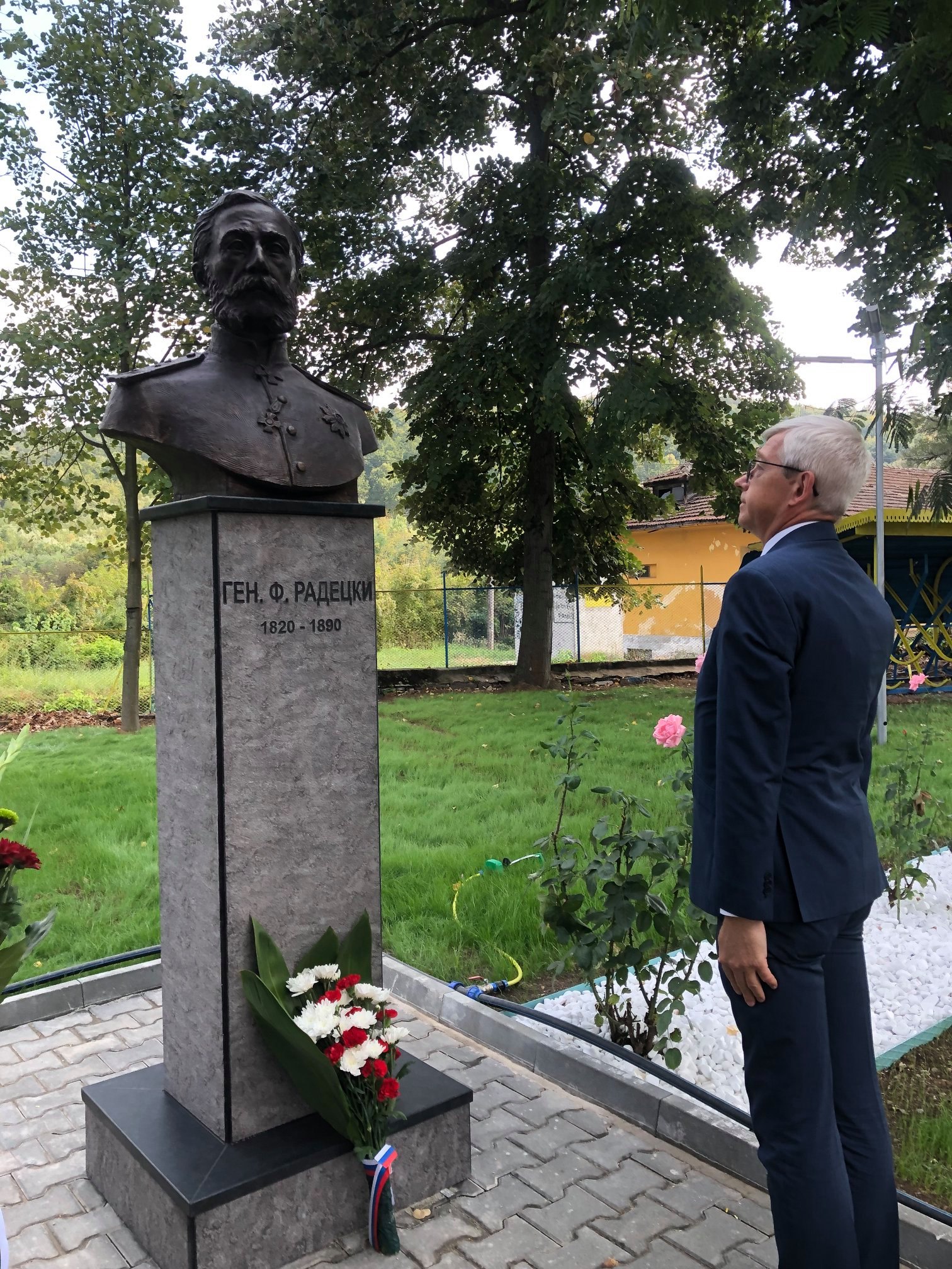 /КРОСС/ В град Дряново на територията на вагоностроителния завод "Интерком" се състоя тържественото откриване на бюст на руския пълководец, герой от Руско-турската освободителна война 1877-1878 г. и ръководител на отбраната на Шипка - генерал Фьодор Фьодорович Радецки.