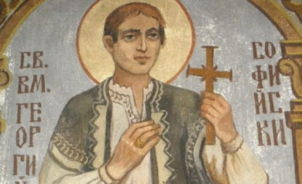 /КРОСС/ Св. мъченик Георги Софийски Най-нови е един от 9-те софийски светци. Образът му е изписан на общата им икона, както и на икона в столичния храм "Св. Георги Победоносец" Ротонда.