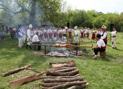 Най-популярният обичай за този ден е печенето на агне, което да събере на трапезата цялата фамилия. Коли се първото, родено през годината мъжко агне. На главата му се слага венец от свежи цветя, закрепва се запалена свещ. На агнето се дава да близне сол за ситост и плодородие и да хапне свежа трева - за здраве и младост при хората и обилна паша при животните. Агнето се заколва до източната стена на къщата или на свещено за местността място, наречено оброчище. Кръвта на животното се излива в реката, „да тече берекетът в къщата". Ако в съда с кръвта от агнето се сложи коприва, по-късно тя служи за лек на обриви и при други кожни болести. С кръвта на агнето се мацват бузките на децата, за да са здрави и жизнени. Костите на жертвата се заравят на място, „където не стъпва човешки крак". Кокалчето от предния десен крак се пази и служи за лек и против уроки.
