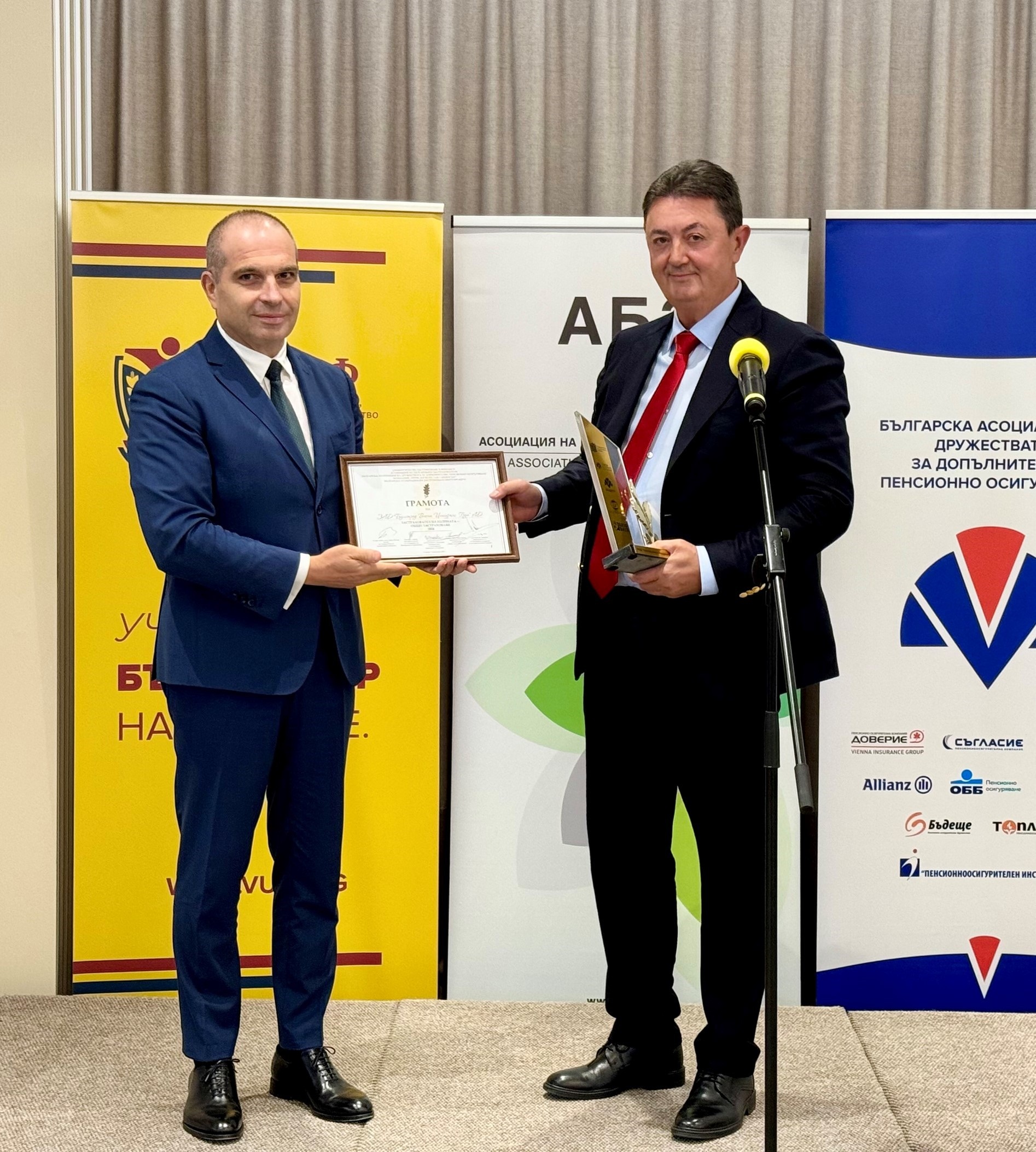 Призът беше връчен на г-н Недялко Чандъров, председател на УС и главен изпълнителен директор на дружеството, от г-н Гроздан Караджов - Заместник министър-председател и министър на транспорта и съобщенията.