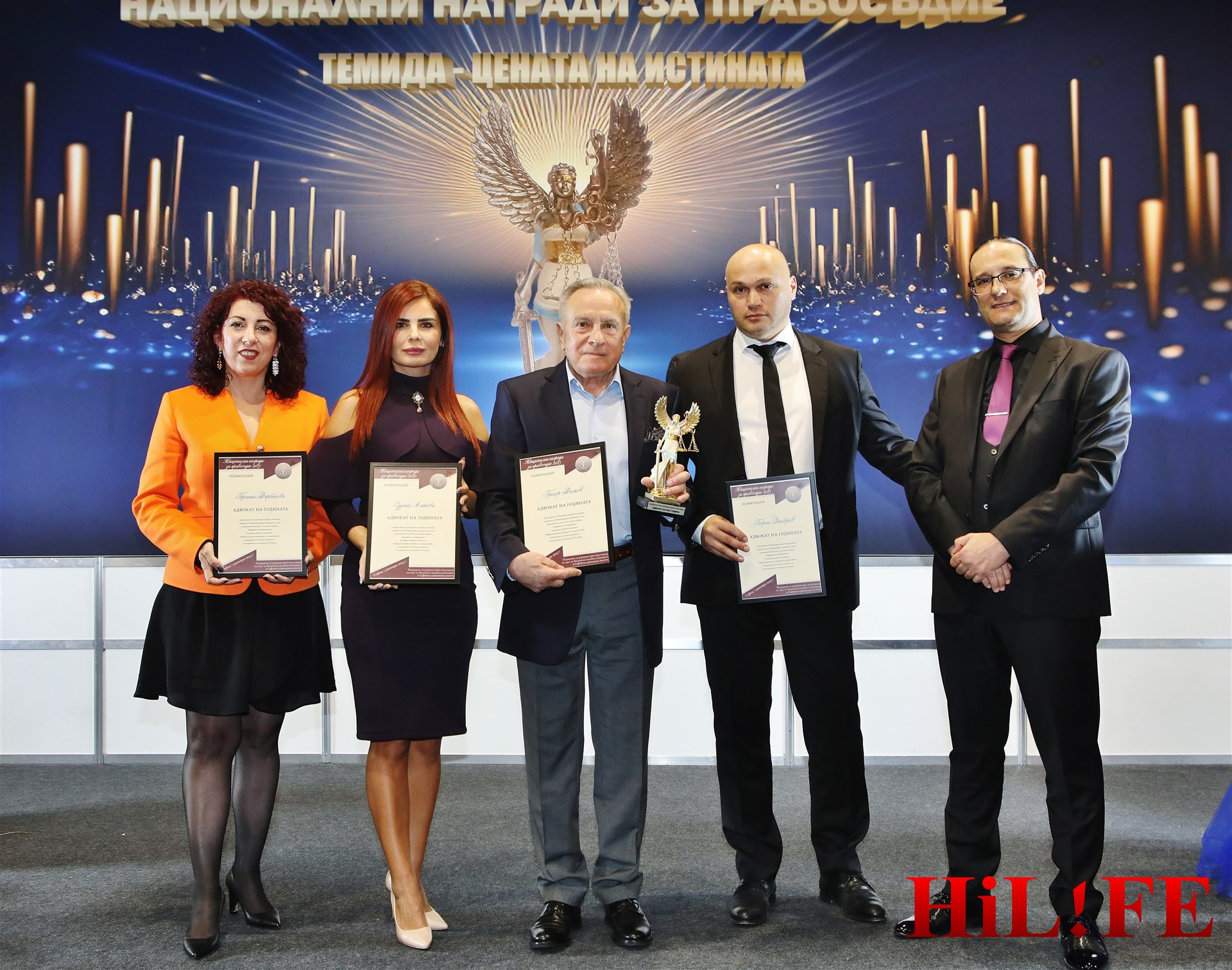 С приза „Адвокат на годината" бе отличен Григор Вълков, статуетката Темида му бе поднесена от миналогодишния победител Георги Баев. На сцената да получат своите плакети излязоха и част от номинираните - Георги Денборов, Гергана Върбанова и Сузана Алекова.