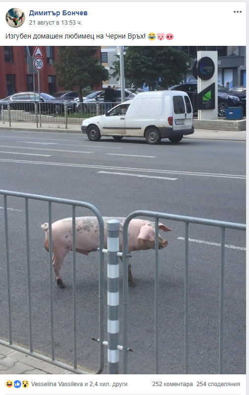 /КРОСС/ Безпризорно прасенце се разходи по централния столичен булевард "Черни връх" и шашна минувачите във вторник.