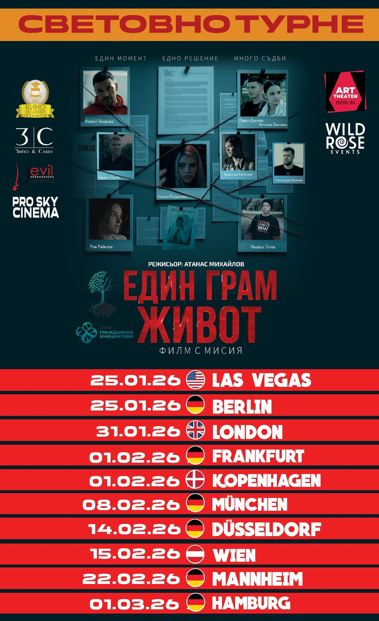 Можете да следите тук за актуалните прожекции, изчерпани билети и нови дати за прожекции по света: