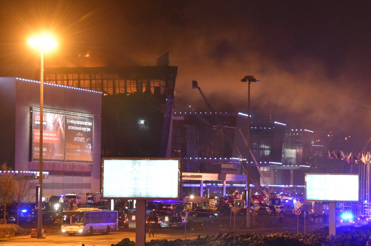 Автобуси бяха изпратени до Crocus City Hall за евакуация на хората. Руското външно министерство нарече инцидента кървава терористична атака.