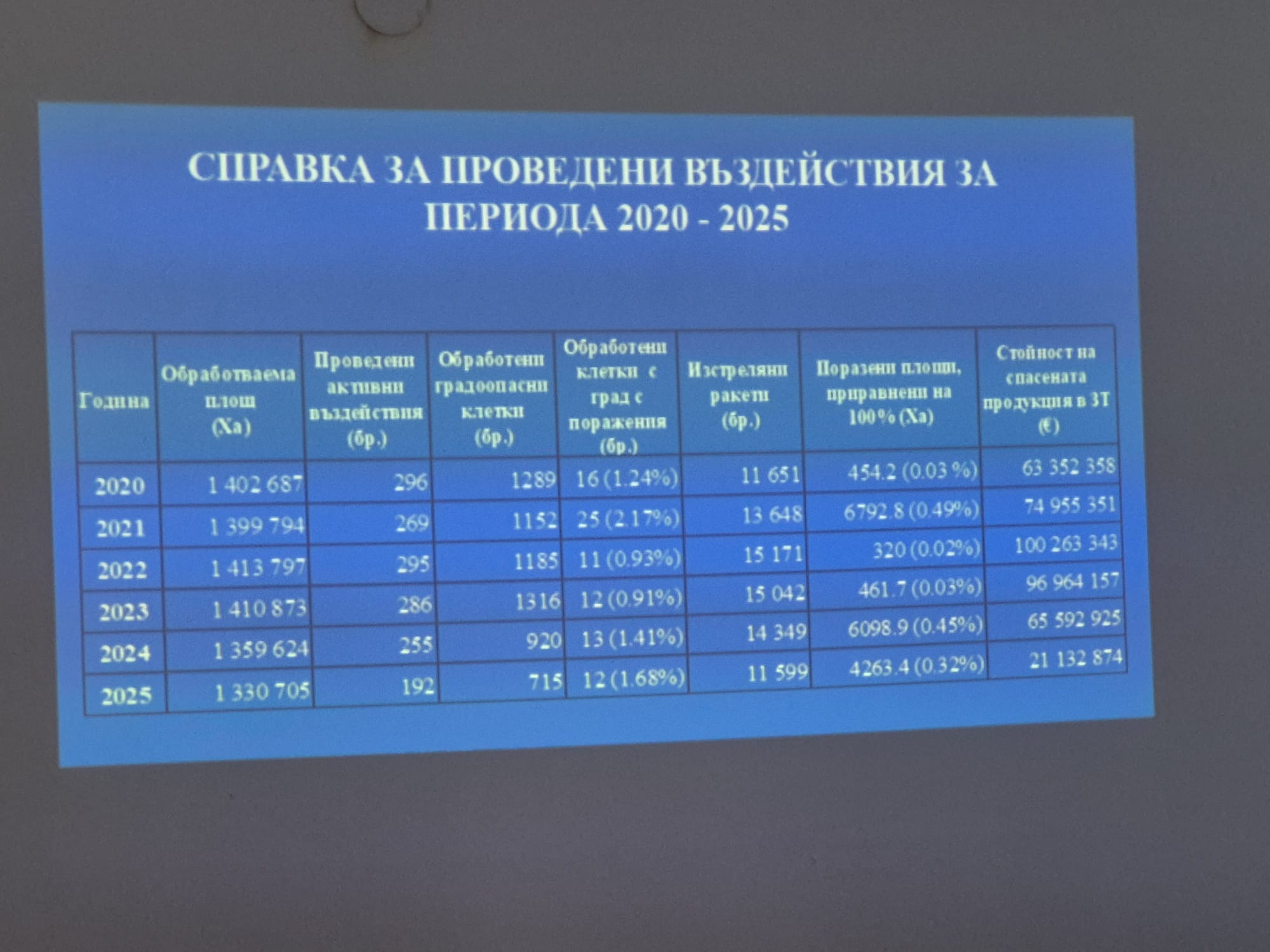 Министър Христанов подчерта още, че системата се надгражда, за да отговори на нарастващите климатични предизвикателства. „В момента изграждаме нови 21 ракетни площадки, с цел увеличаване обхвата на защитата в страната", информира земеделският министър. Той уточни, че способите, по които се осъществява противоградовата защита в България са два - ракетен и самолетен, което позволява по-ефективно въздействие и ограничаване на неблагоприятните метеорологични явления. „Нашата амбиция е Агенцията да се превърне в модерна структура за метеорологични въздействия, включително с възможности за изкуствено предизвикване на валежи и със собствен авиационен капацитет. Институцията трябва да заеме водещо място не само в България, но и в Европа", заяви министър Христанов. Той увери, че страната е технически напълно подготвена за сезона, като към момента са налични около 16 хил. ракети и има готовност за осигуряване на допълнителни количества, при необходимост.