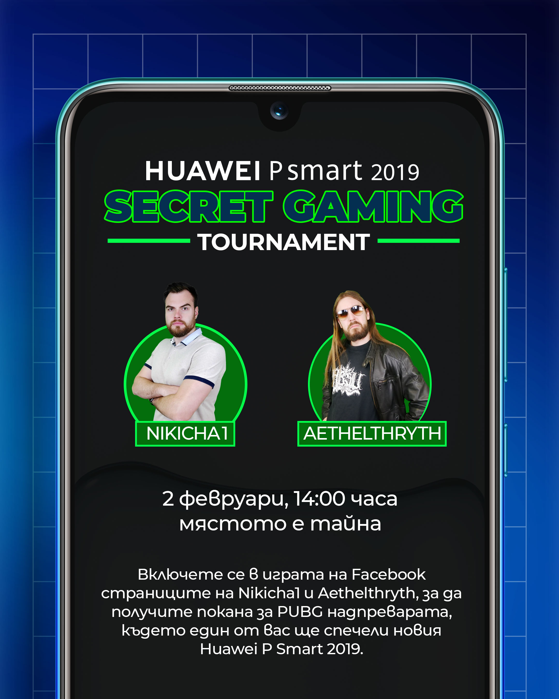 /КРОСС/ Huawei организира турнир за мобилен гейминг, който ще се проведе изцяло с най-новия модел на компанията - Huawei P smart 2019. На засега тайно място, което ще бъде една от приятните изненади за участниците, на 2 февруари то ще събере 10 от най-отдадените играчи на популярната мобилна игра „PlayerUnknown's Battlegrounds", както и много фенове на онлайм гейминга. Записването вече тече, а финалният победител ще спечели новия Huawei P smart 2019.