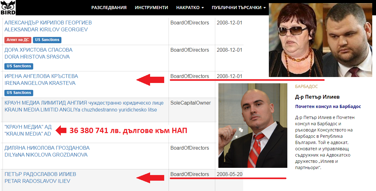 Справка на разследващия сайт bird.bg сочи, че спряганият за кандидат-премиер на ИТН Петър Илиев е бил в борда на Краун Медия преди фирмата да бъде купена от Ирена Кръстева, майката на Делян Пеевски.