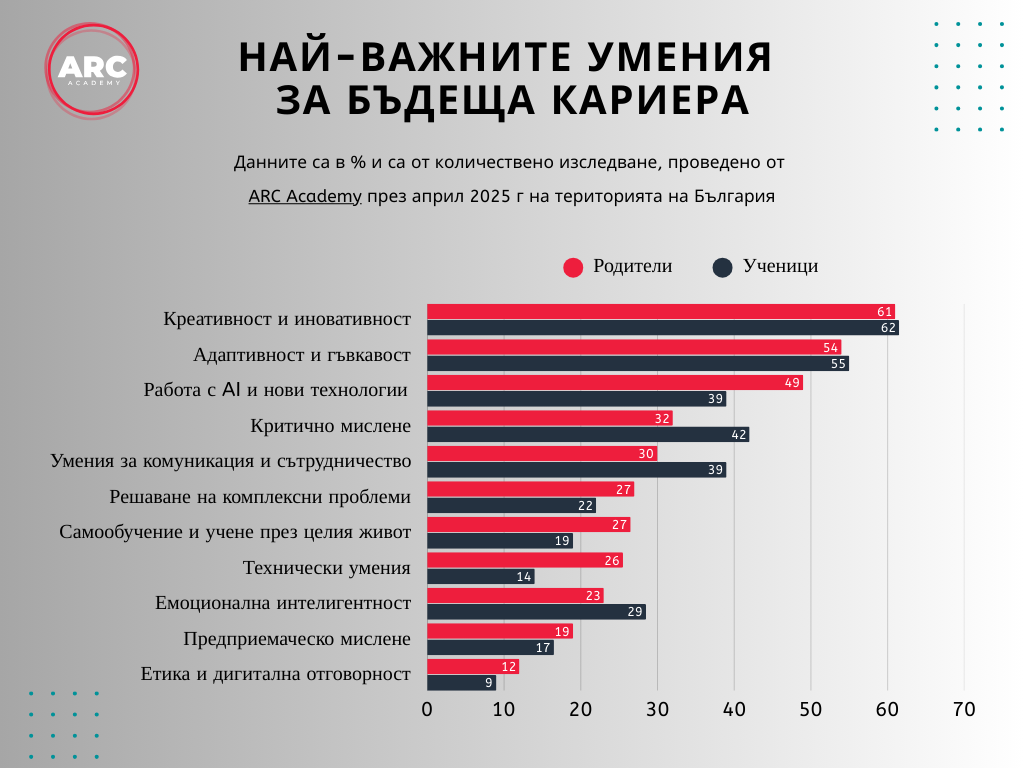 Уменията на бъдещето вече са в полезрението на учениците - те поставят на преден план креативността, гъвкавостта, критичното мислене и уменията за работа с нови технологии като ключови за успешна кариера през следващите 10-20 години.