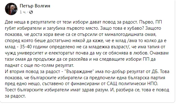 Петър Волгин: Положително от тези изобри е, че „Продължаваме промяна” загубиха първото си място