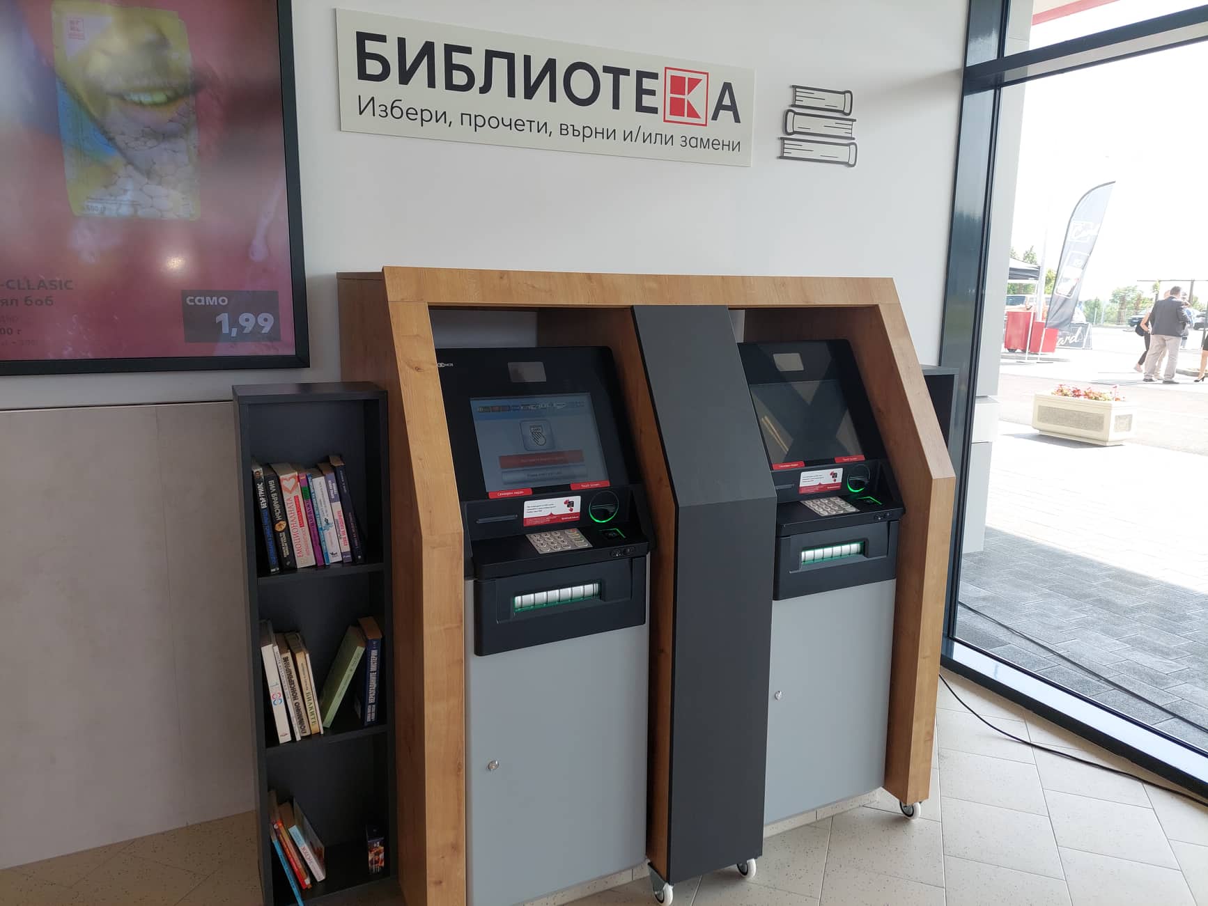 В новооткрития магазин е позициониран и кът, предлагащ възможността да споделиш с други хора книга, която си прочел, или да вземеш книга, която да прочетеш и после да я върнеш.