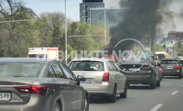 Голямо задръстване и горяща кола на „Цариградско шосе” в София