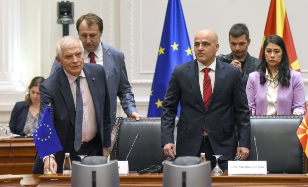 Това заяви върховният представител за външната политика и политиката за сигурност и отбрана на ЕС Жозеп Борел в Скопие на съвместна пресконференция с премиера Димитър Ковачевски и комисаря по разширяването Оливер Вархеи. В Скопие се състоя първият Съвет за стабилизиране и асоцииране между ЕС-РСМ.