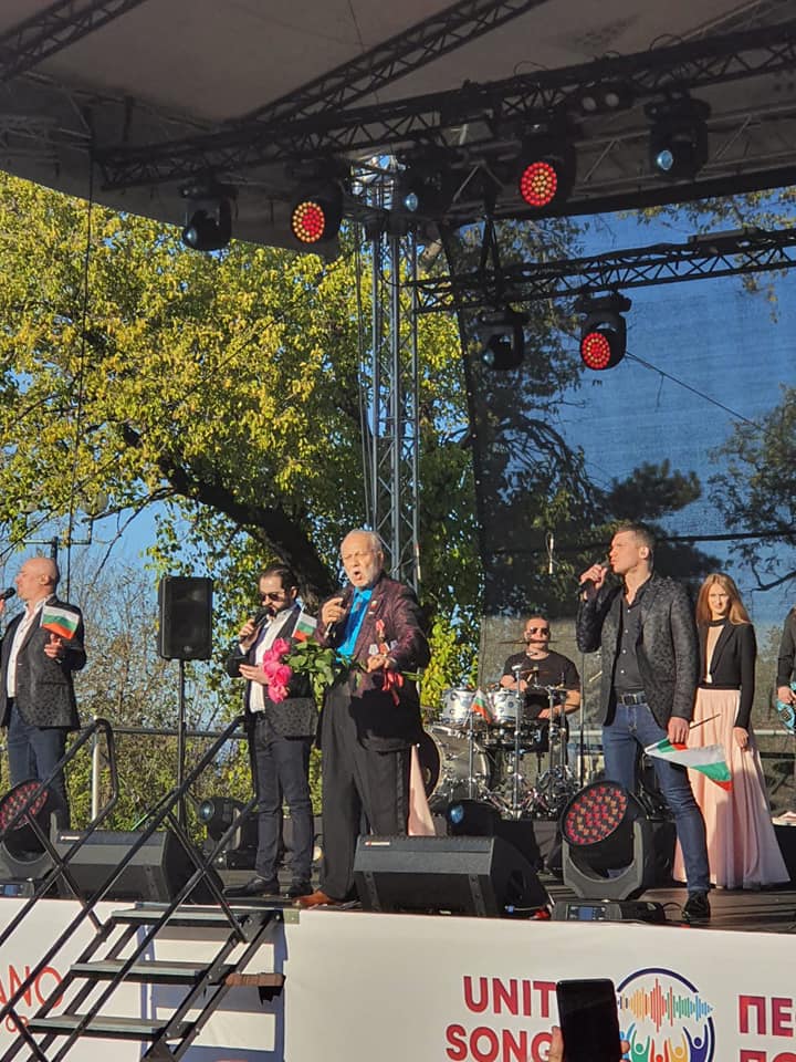 /КРОСС/ Преди началото на концерта под наслов „Песни на Победата" на хор "Турецкий" в Пловдив, представители на Руското посолство, Руския културно-информационен център в София, артисти от хора и вокална група „Сопрано" поднесоха цветя на паметника "Альоша". В концерта участва и Б.Киркоров.