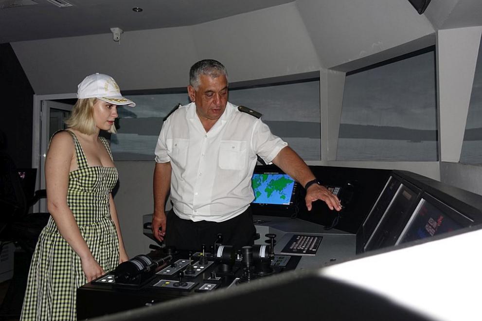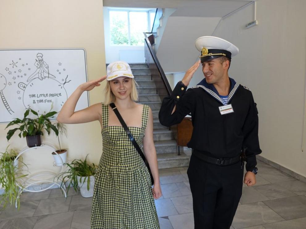 В Морско училище Мария Бакалова е била посрещната от началника - флотилен адмирал проф. д.в.н. Боян Медникаров. Под негово ръководство тя е управлявала кораб в тренажорния комплекс. Преди това е издигнала и дрон в двора на училището.