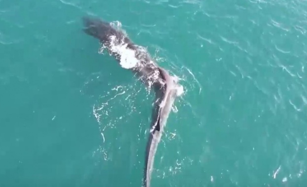 /КРОСС/ Заснеха 40-тонен кит със сколиоза край бреговете на Валенсия. Кадрите са предоставени от испанската гранична полиция и на тях ясно се вижда, че морският бозайник страда от тежка форма на гръбначно изкривяване.