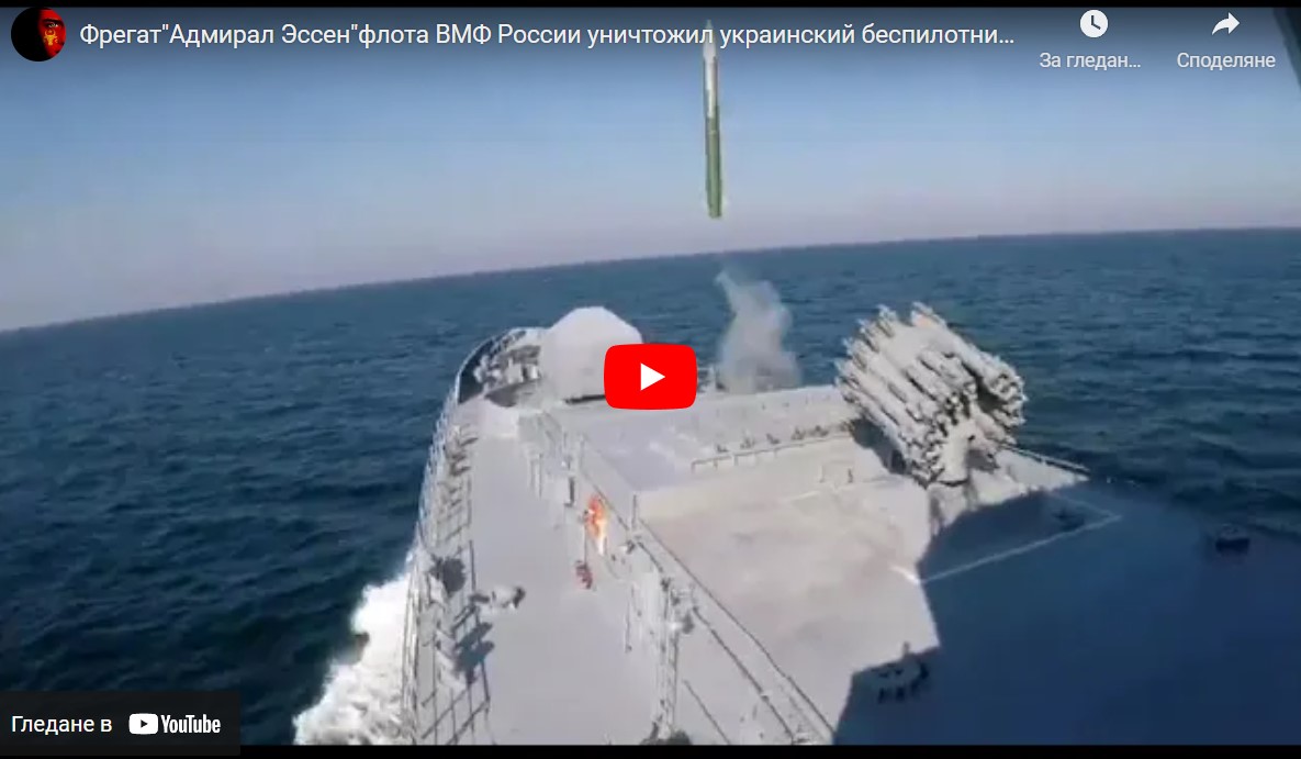 /КРОСС/ Фрегатата "Адмирал Есен" унищожи украинския дрон Bayraktar край бреговете на Крим. Това съобщиха от Министерството на отбраната на Руската федерация.