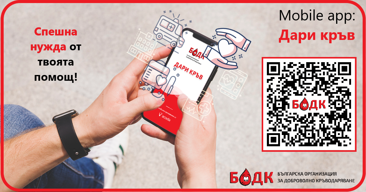 БОДК помага за спешни случаи посредством мобилното приложение „Дари кръв", част от системата за взаимопомощ на организацията. Потребителите могат да потърсят помощ чрез спешен призив за кръводарители, да окажат помощ, да получават известия както за спешни призиви, така и за кампании за доброволно кръводаряване, да разберат къде могат да дарят кръв или да се свържат с БОДК. Призивите за помощ са се увеличили с 48% спрямо предходната година, като всеки призив се проверява и потвърждава за автентичност, коректност и актуалност. Съществен момент е липсата на пряк контакт между даряващите кръв и нуждаещите се от нея, което преодолява рисковете от злоупотреби с нуждата и възпрепятства възможността да се поискат пари срещу дарената кръв. Само за последната година през приложението са проведени повече от 630 успешни акции за спешна помощ, от които около 38% с търсене на конкретна кръвна група и над 85% с търсене за конкретен регион от страната. Приложението е част от цялостна система, която се поддържа и администрира изцяло от доброволци-членове на БОДК и предоставянето на помощ чрез нея е доброволно и безвъзмездно.