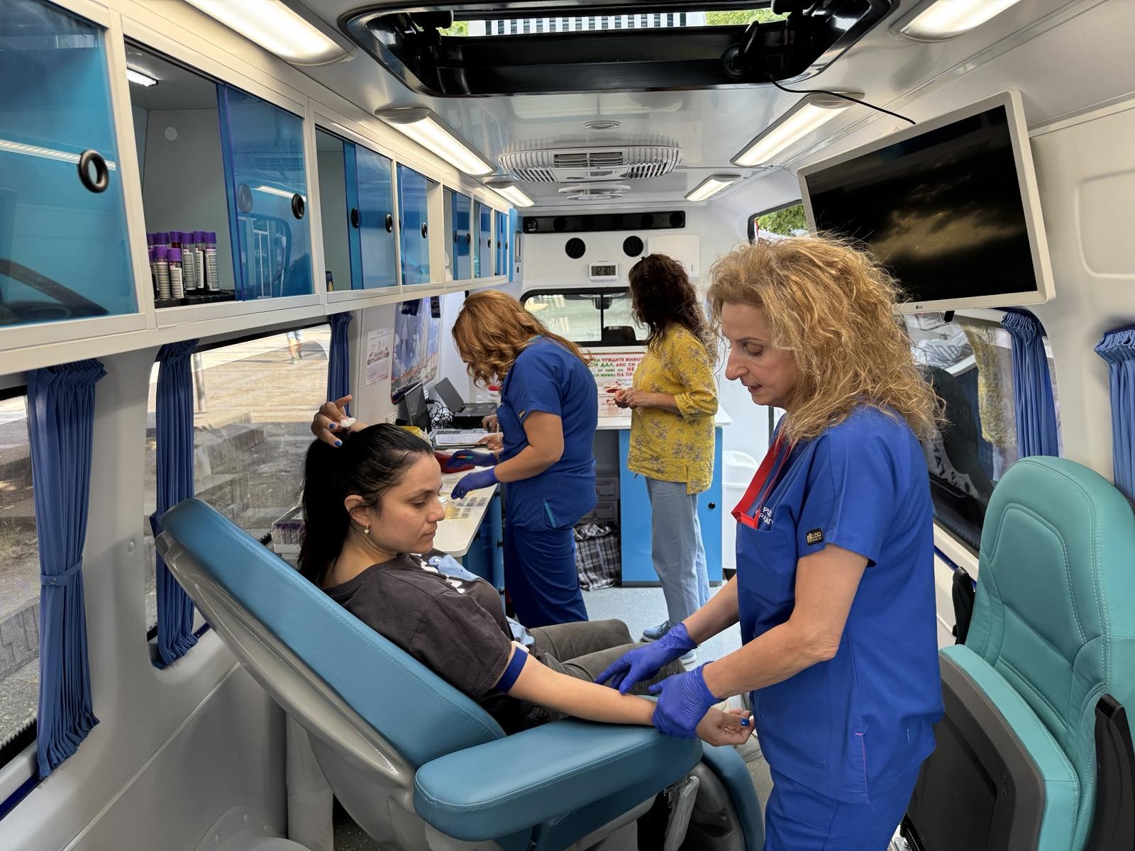 Сред първите, които подкрепиха благородната кауза с личен пример и дариха кръв, бяха заместник-кметът Павлина Делчева и секретарят на Община Стара Загора Николай Диков. С участието си те отправиха послание за солидарност, човечност и съпричастност. Те и всички други желаещи дариха кръв в новия мобилен пункт - модерно оборудван бус с две удобни седящи места, предоставен наскоро на кръвния център.