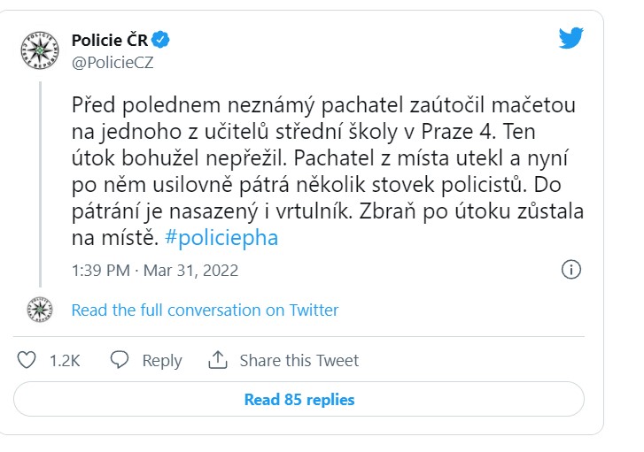 /КРОСС/ Ученик уби учител с мачете в средно училище в Прага.