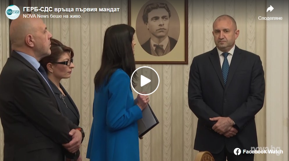 /КРОСС/ Номинираната от ГЕРБ-СДС за премиер Мария Габриел връща на президента Румен Радев първия мандат за съставяне на правителство.