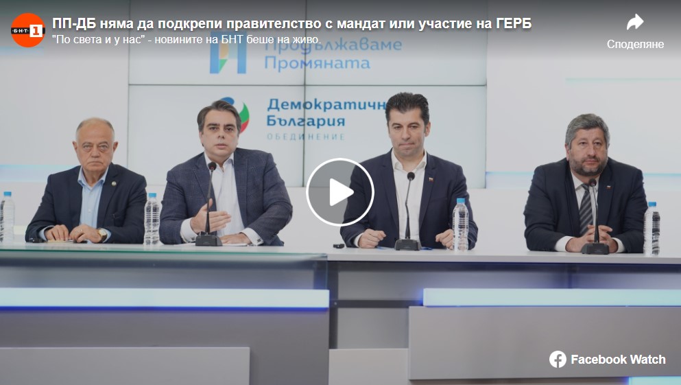 Продължаваме промяната" и "Демократична България" обявиха общите си действия след изборите на 2 април на брифинг. Коалицията остана втора с близо 2% след ГЕРБ-СДС.