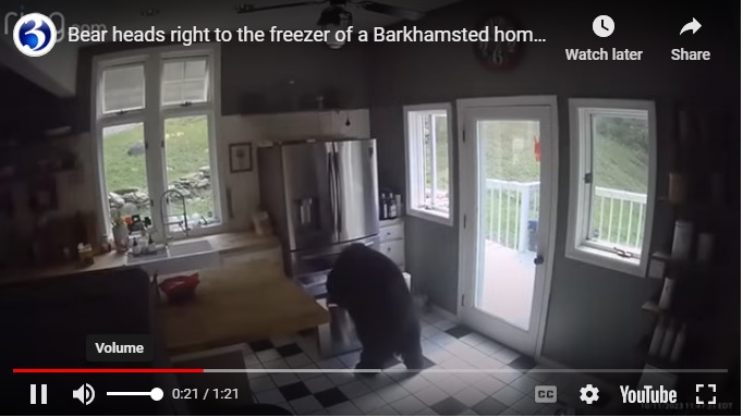 /КРОСС/ Камери за видеонаблюдение в дом в Кънектикът са записали появата на неканен гост, съобщава UPI. Собственичката Хелена Хаулис е получила сигнал на телефона си, че вратата на хладилника й е била оставена отворена.