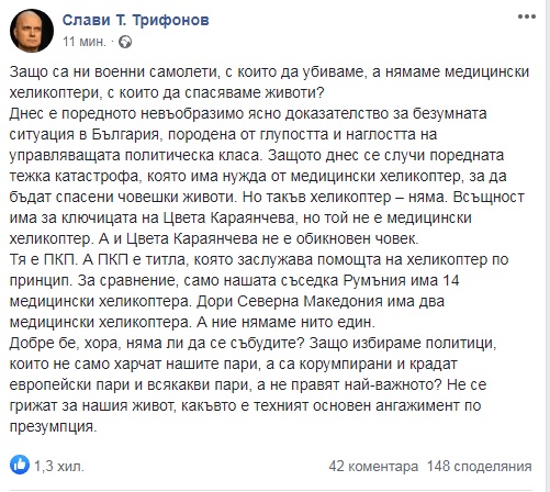 Коментар на Слави Трифонов на страницата си във фейсбуск.