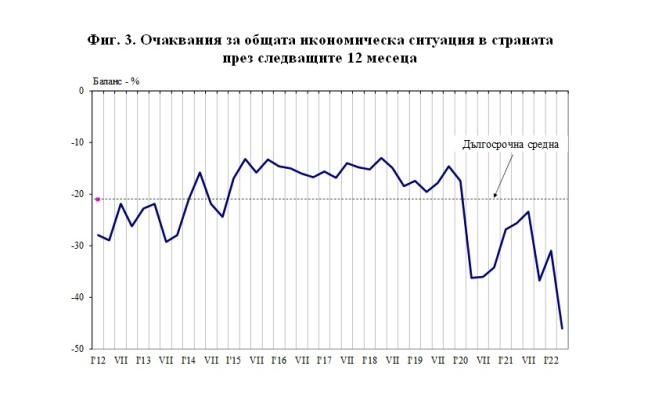 Настоящата икономическа ситуация в страната продължава да се оценява от по-голямата част от потребителите като неблагоприятна за спестяване. Негативна е и нагласата им по отношение на извършването на разходи за покупка на предмети за дълготрайна употреба, за „покупка или построяване на жилище (вила)“ и за „подобрения в дома“ през следващите дванадесет месеца.
