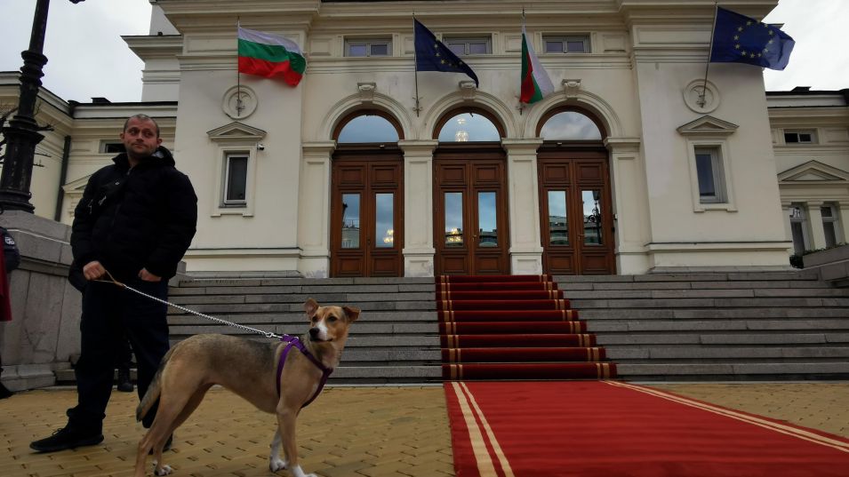 /КРОСС/ Кучето, което през октомври посрещна депутатите от 48-ото Народно събрание, отново е пред сградата на парламента.