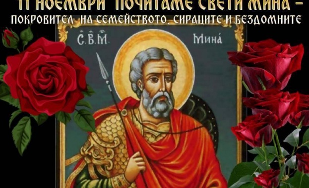 /КРОСС/ На 11 ноември почитаме Свети Мина като покровител на семейството. Името му означава "месечина, Луна". Известен Чудотворец, Свети Мина е покровител на сираците и бездомните. Смята се за патрон и покровител на всички народни лечители, знахари, воини, както и на хората, поели на дълъг път.