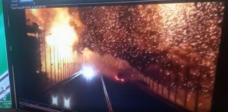 Взрив на камиона е довело до запалване на седем резервоара за гориво на влака. Два автомобилни участъка на моста са частично срутени.