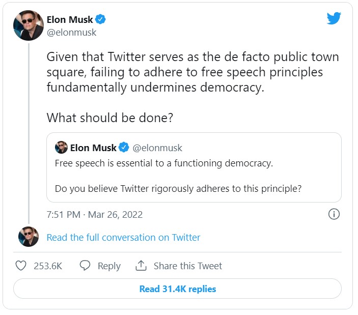 Милиардерът е редовен потребител на социалната мрежа и има над 80 милиона последователи. Покупката на акции в компанията идва на фона на скорошните изявления на Мъск, че "сериозно обмисля" да създаде собствена социална комуникационна платформа.