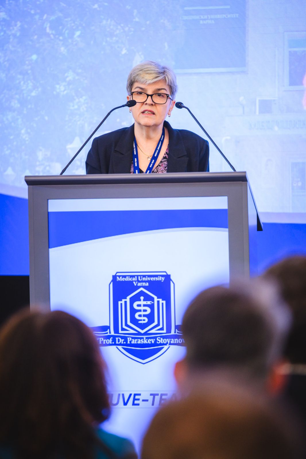 Проф. д-р Виолета Йотова - зам.-ректор „Научна дейност", допълни: „Наученото по време на проекта и нашите постижения, които днес представяме на MUVATHON, са мост към бъдещото устойчиво развитие на науката и иновациите в Медицински университет - Варна". Според проф. Йотова инициативата е част от програмата на Министерството на образованието и науката за бъдещо финансиране на научноизследователските университети, според която те трябва да получат 40% допълнителна субсидия към тази за обучение до 2030 година. „Това е стратегията за наука на България, съобразена с международните изисквания", уточни проф. Йотова и подчерта, че успехът на МУ-Варна по MUVE-TEAM е гаранция, че той ще бъде част от този процес. Тя изтъкна и друго съществено постижение - 3-то място по научни резултати на МУ-Варна сред 51 образователни институции в България, ангажирани с научна дейност.