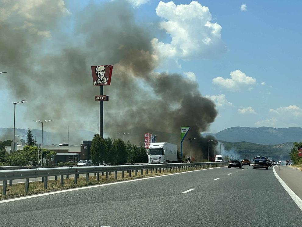 Пожар пред бензиностанция край Виноградец в област Пазарджик.