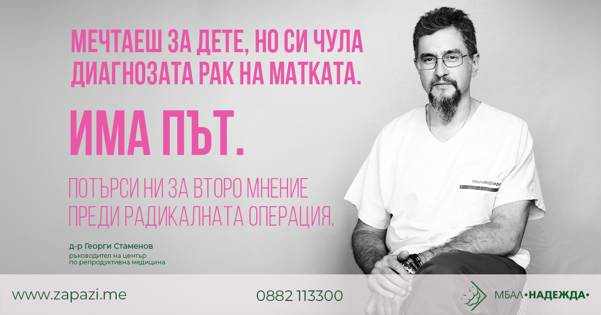 Кампанията ще протече онлайн - в социалните мрежи, специализирания информационен портал на МБАЛ „Надежда" - zapazi.me, партньорски сайтове и различни платформи, в които регулярно ще бъде публикувана полезна и достоверна информация, свързана с темата за запазване на репродукцията при пациенти с онкологична диагноза.