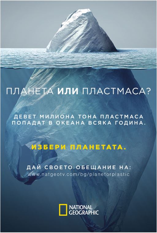 National Geographic поставя началото на кампанията „Планета или пластмаса?“ и в България. Целта на инициативата е да разгласява за проблема, да образова за възможните решения и да подтиква към лична съпричастност. Съмишлениците на National Geographic ще могат да дадат публично обещание в социалните мрежи и с конкретни действия да допринесат за ограничаването на замърсяването.