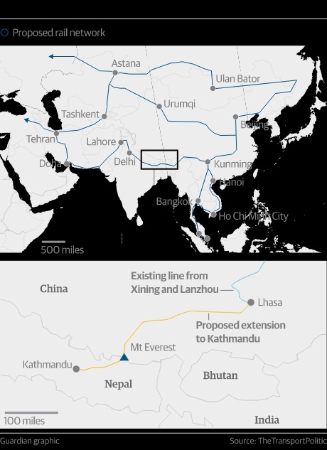 Проектът засилва китайското влияние над беден Непал, където Пекин и Делхи от десетилетия се надпреварват за надмощие, коментира The Guardian. Китай от години строи пътища и инвестира милиони долари в изграждане на телекомуникационни връзки и хидроенергетика. Очаква се жп инфраструктурата да увеличи китайския туризъм в Непал, тъй като в страната се намират 8 от 14-те 8-хилядници в света.