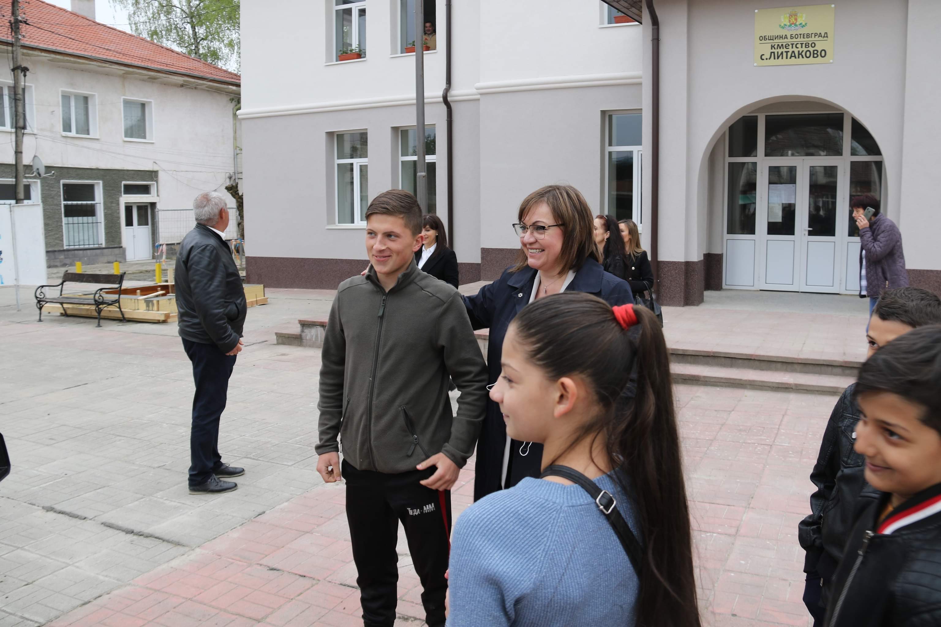 Нинова разговаря и с кмета на селото Пешо Младенов, издигнат от БСП, и го поздрави за новия облик, който е придал на селото и направеното от него за хората.