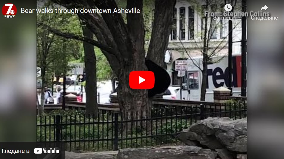 На кадри, разпространени в социалните мрежи, се вижда, че животното носи каишка с проследяващо устройство, поставена му от местната Агенция за опазване на дивата природа. Мечката не се притеснявала нито от автомобилите, нито от случайните минувачи в Ашвил и спокойно разглеждала местните забележителности, споделят очевидци.