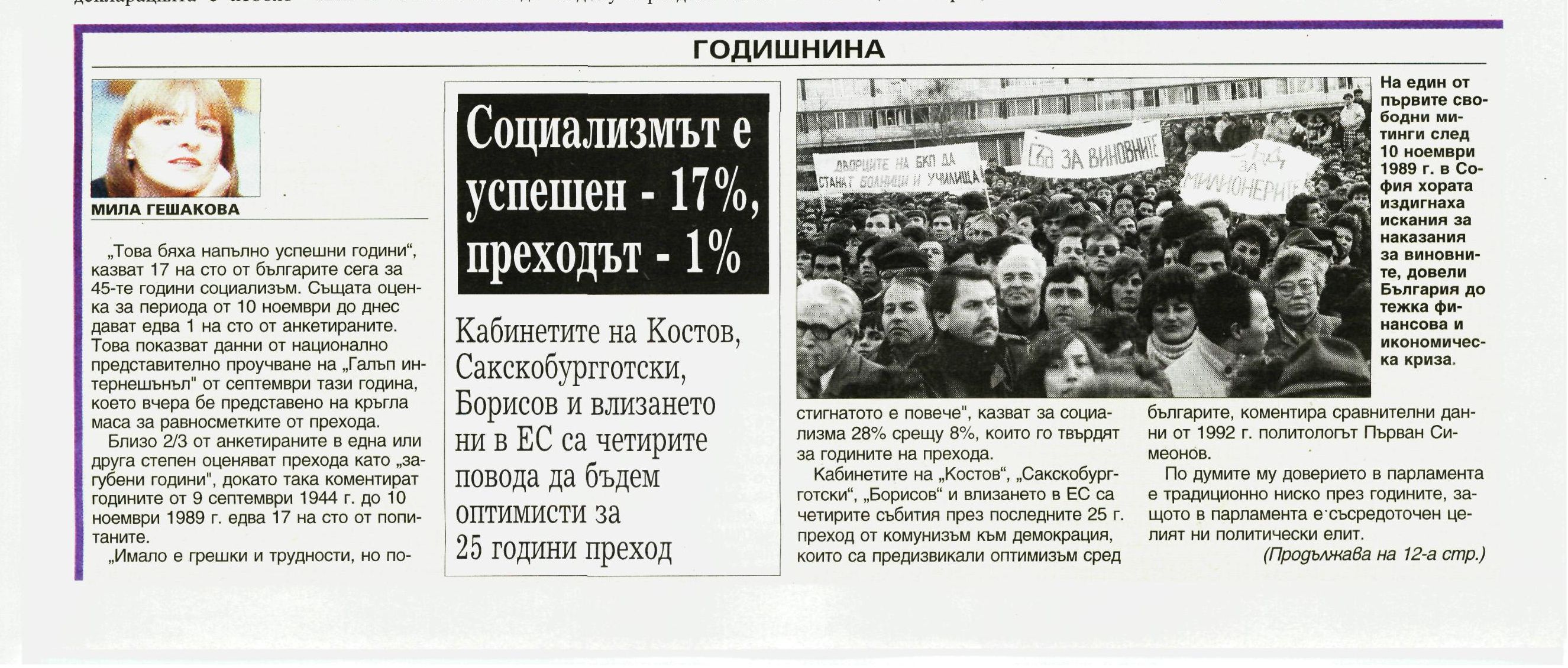 *Първият свободен митинг след пленума на Централния комитет на БКП на 10 ноември 1989 г., когато Тодор Живков бе освободен като генерален секретар и член на Политбюро на ЦК на БКП, бе на 18 ноември пред Патриаршеската катедрала „Св. Александър Невски".
