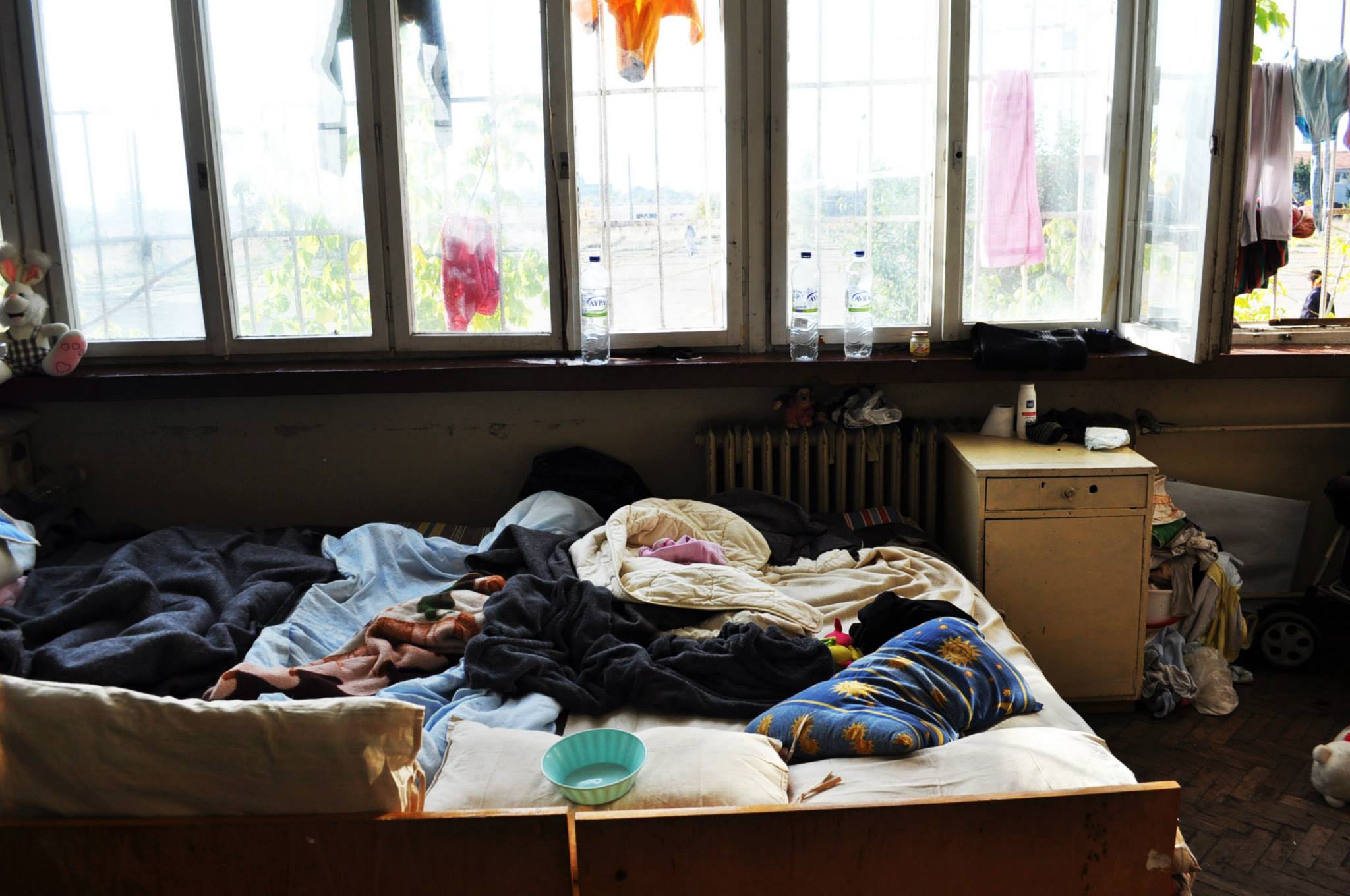 g. Помещенията са задръстени от боклук, натрупан в сградата преди настаняването на бежанците. Сградата е изоставена от много години.