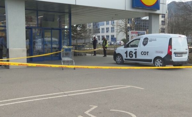 Обирът се случва на паркинга на голяма верига хранителен магазин в 11 ч. Двамата охранители са слезли от автомобила и влизат в магазина.