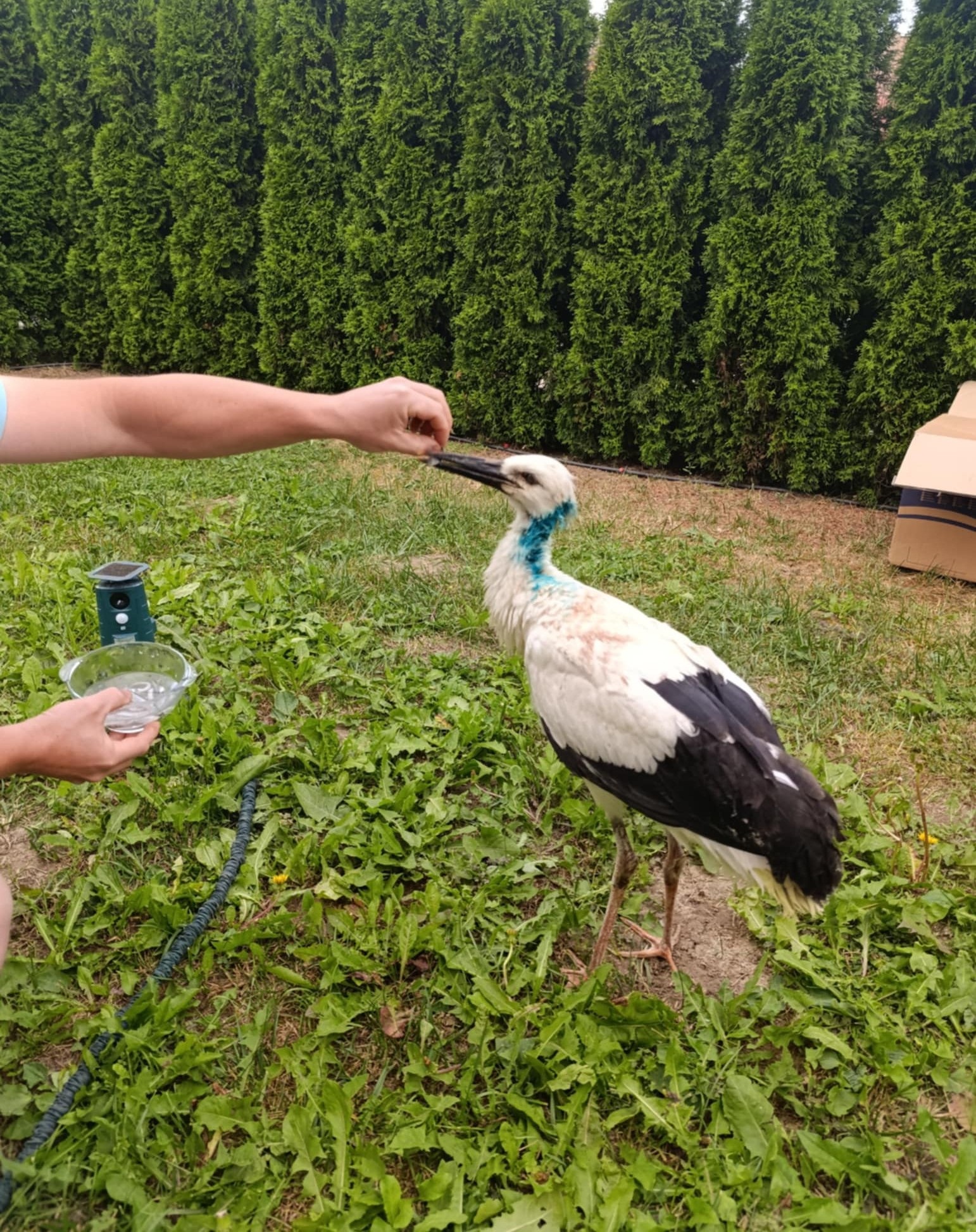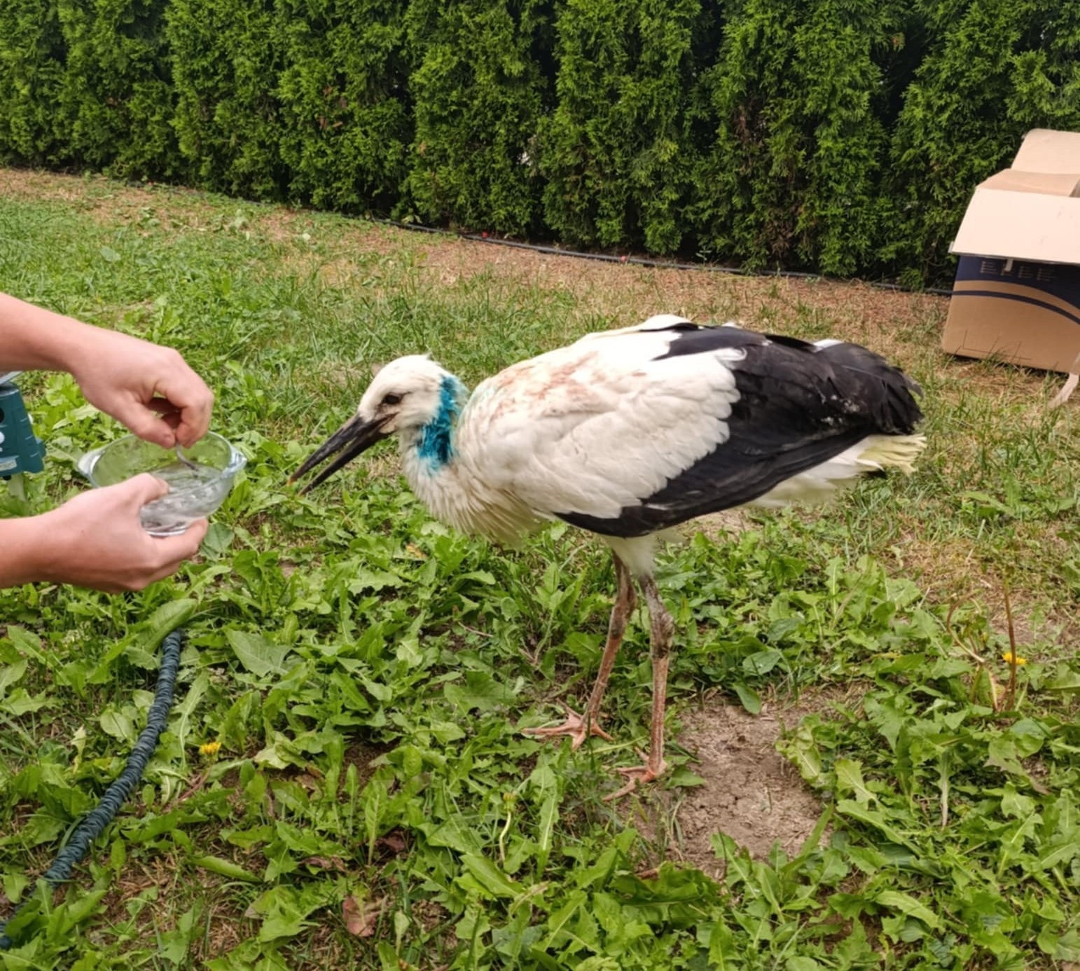 Служители на Община Етрополе спасиха щъркел в безпомощно състояние