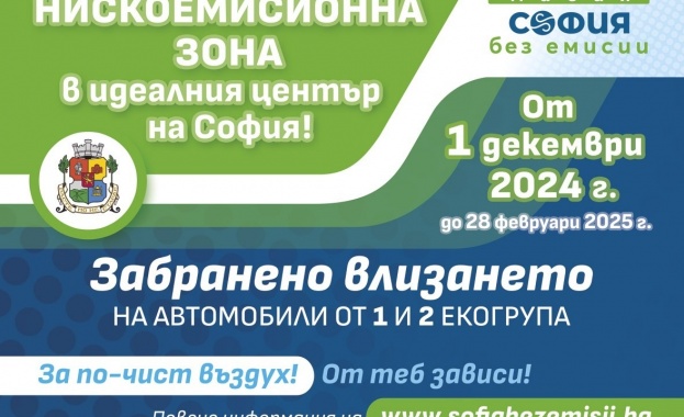 Столична община припомня - от 1 декември влиза в сила нискоемисионната зона за автомобили