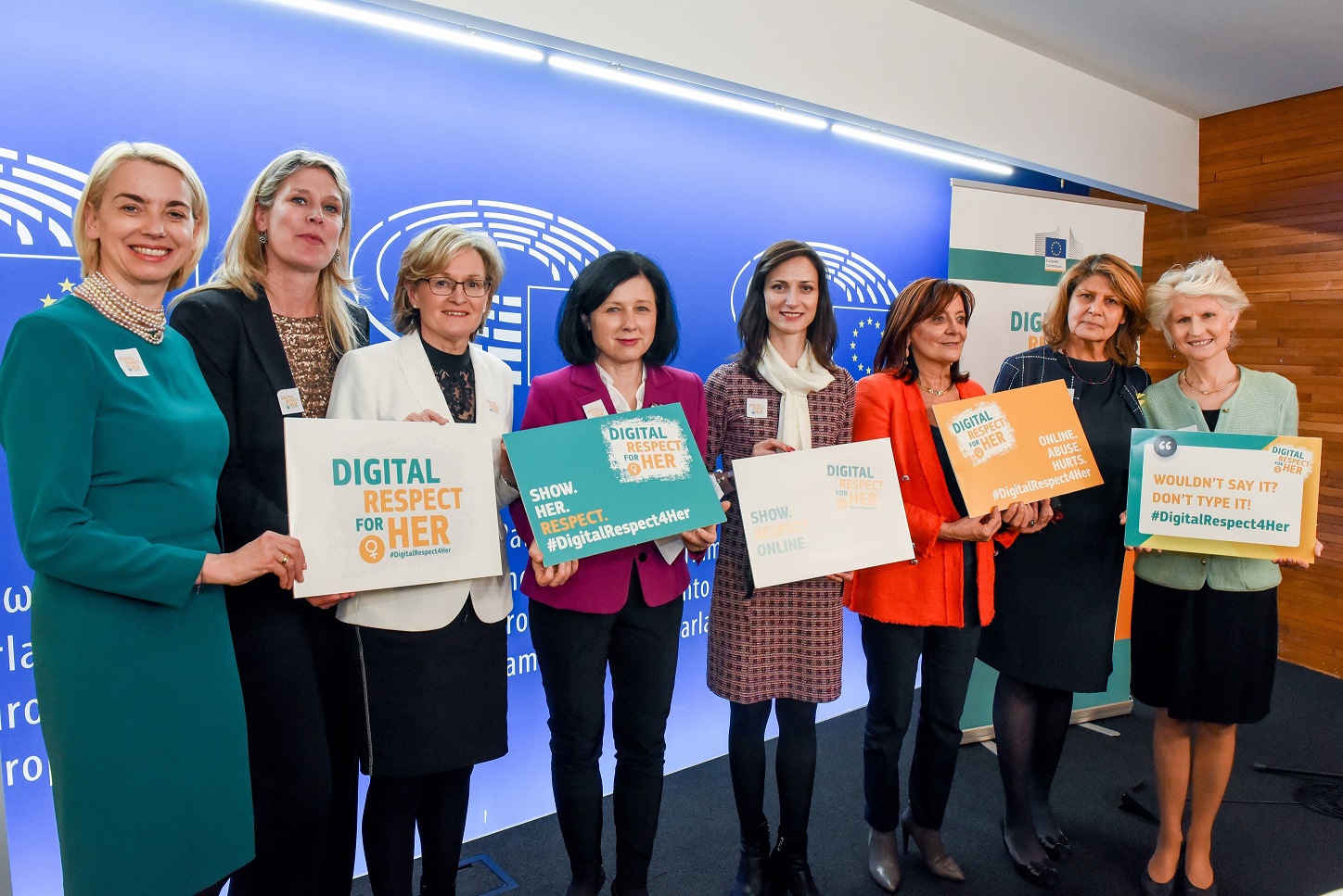 Кампанията #DigitalRespect4Her е подкрепена от обществени личности, които споделят своите истории и опит с онлайн насилието и как тя ги засяга като жени в професионалния им живот. Тя надгражда вече съществуващи документи на ЕС като Директивата за аудио-визуални медийни услуги, Препоръката за справяне с незаконното съдържание онлайн, Директивата за правата на жертвите и други. Освен дейностите в социалните мрежи се предвиждат срещи с различните платформи и организации, които имат отношение към проблема.