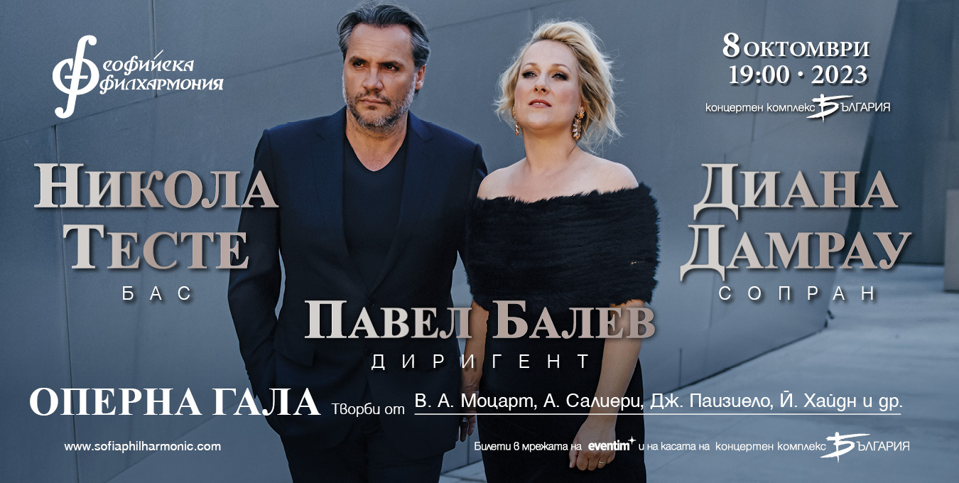 /КРОСС/Наричана „водещото колоратурно сопрано на света" и „най-добрата Царица на нощта", Диана Дамрау вече две десетилетия пее на най-големите оперни и концертни сцени на света. Тя се включва в есенния полусезон на Софийската филхармония заедно със съпруга си - известния френски бас Никола Тесте. Почитателите на оперното изкуство у нас ще имат удоволствието да слушат звездния оперен дует на 8 октомври в зала „България". Диригентската палка ще е в ръцете на Павел Балев, който може да се похвали с дългогодишното си сътрудничество с Дамрау. Програмата на вечерта включва арии и дуети от Моцарт, Салиери, Паизиело и Хайдн.