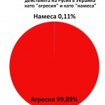 Нека сега да сравним като процентно съотношение броя публикации (общ брой 898), описващи действията на Русия в Украйна като "агресия" с тези, описващи ги като "намеса" (Снимка с графика 2).
