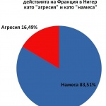 А сега да сравним като процентно съотношение за същия период броя публикации (общ брой 279), описващи действията на Франция в Нигер като "агресия" с тези, описващи ги като "намеса" (снимка с графика 3).
