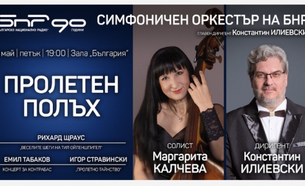 /КРОСС/ Пролетен полъх носи следващия концерт на Симфоничния оркестър на БНР. На 9 май, петък, от 19.00 ч. в зала „България" Радиосимфониците под палката на главния си диригент Константин Илиевски ще изпълнят „Веселите шеги на Тил Ойленшпигел" от Рихард Щраус, Концерт за контрабас от Емил Табаков и „Пролетно тайнство" от Игор Стравински. Солист ще е Маргарита Калчева.