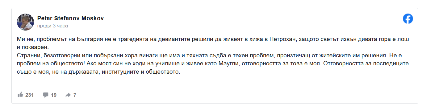 Москов за случая "Петрохан": Ако синът ми не ходи на училище и живее като Маугли - отговорността е моя